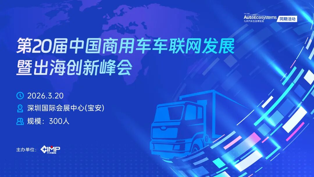 围绕商用车电动升级、智能网联技术迭代、电动化场景落地、车辆运营降本增效、产业链协同出海等行业热点,2026深圳国际商用车生态博览会暨国际卡车文化节携手海内外权威机构打造商用车高端对话平台,于2026年3月20-23日举办商用车创新论坛、车联网大会、物流场景电动化年会、充换电年会、商用车补能论坛等多场论坛峰会。